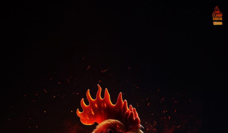 What’s happening: A fierce rooster, its comb and wattles ablaze, rises from fiery embers. This vivid imagery dramatically introduces Campero's "True Flaming Chickens," promising intense heat and flavor.