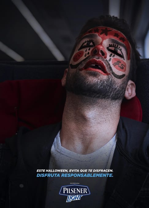 What’s happening: Passed out and painted, a man sports a regrettable clown face on a bus. Pilsener Light delivers a witty Halloween reminder: drink responsibly, or you might wake up in a new "costume."