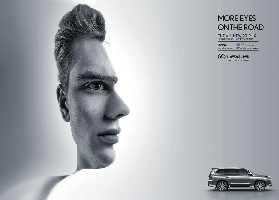 What’s happening: This ad plays a brilliant optical illusion, showcasing a man's face both front-on and in profile. It links this "extra vision" directly to the new Lexus LX's panoramic view camera, promising more eyes on the road, with the sleek SUV displayed subtly below.