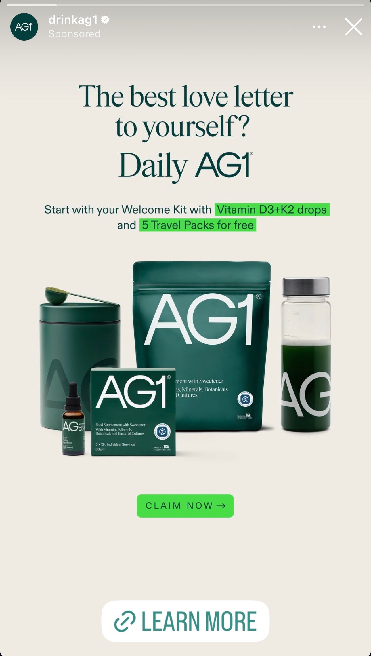 What’s happening: AG1’s rolling out a chic welcome kit for its daily greens, sweetening the deal with free Vitamin D3+K2 drops and convenient travel packs. It’s an aesthetic health push.