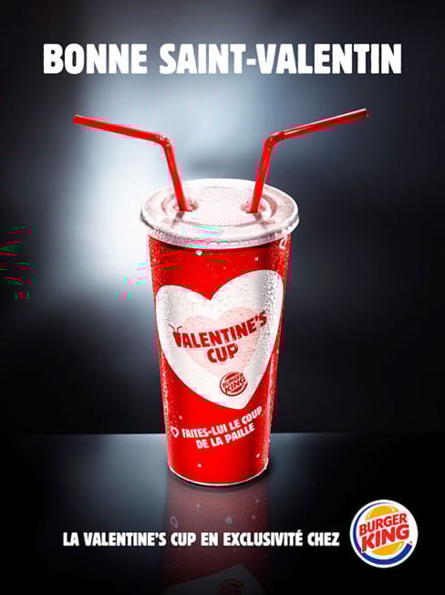 Whatâs happening: Burger King drops a special "Valentine's Cup" with two straws, urging lovebirds to "Faites-lui le coup de la paille" â essentially, play a 'straw trick' on your sweetheart this Valentine's Day.