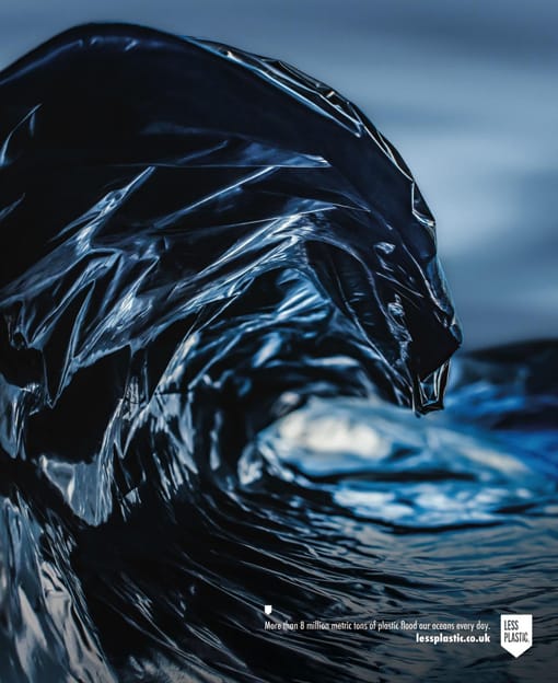 Why it’s awesome: This ad takes a familiar, majestic ocean sight and twists it into a grim plastic prophecy. The visual metaphor is stunningly simple, transforming pollution into an undeniable, cresting threat.